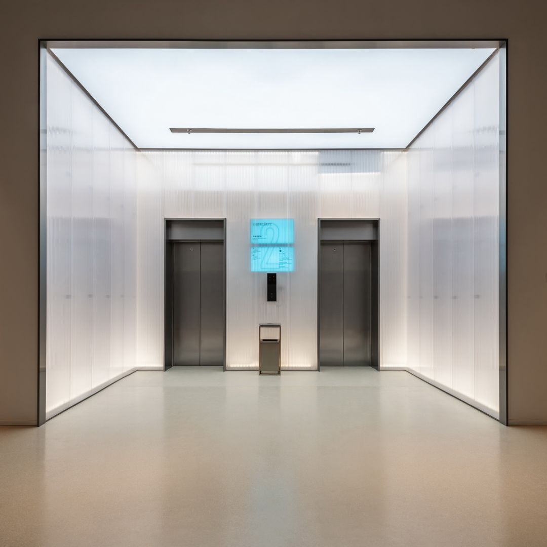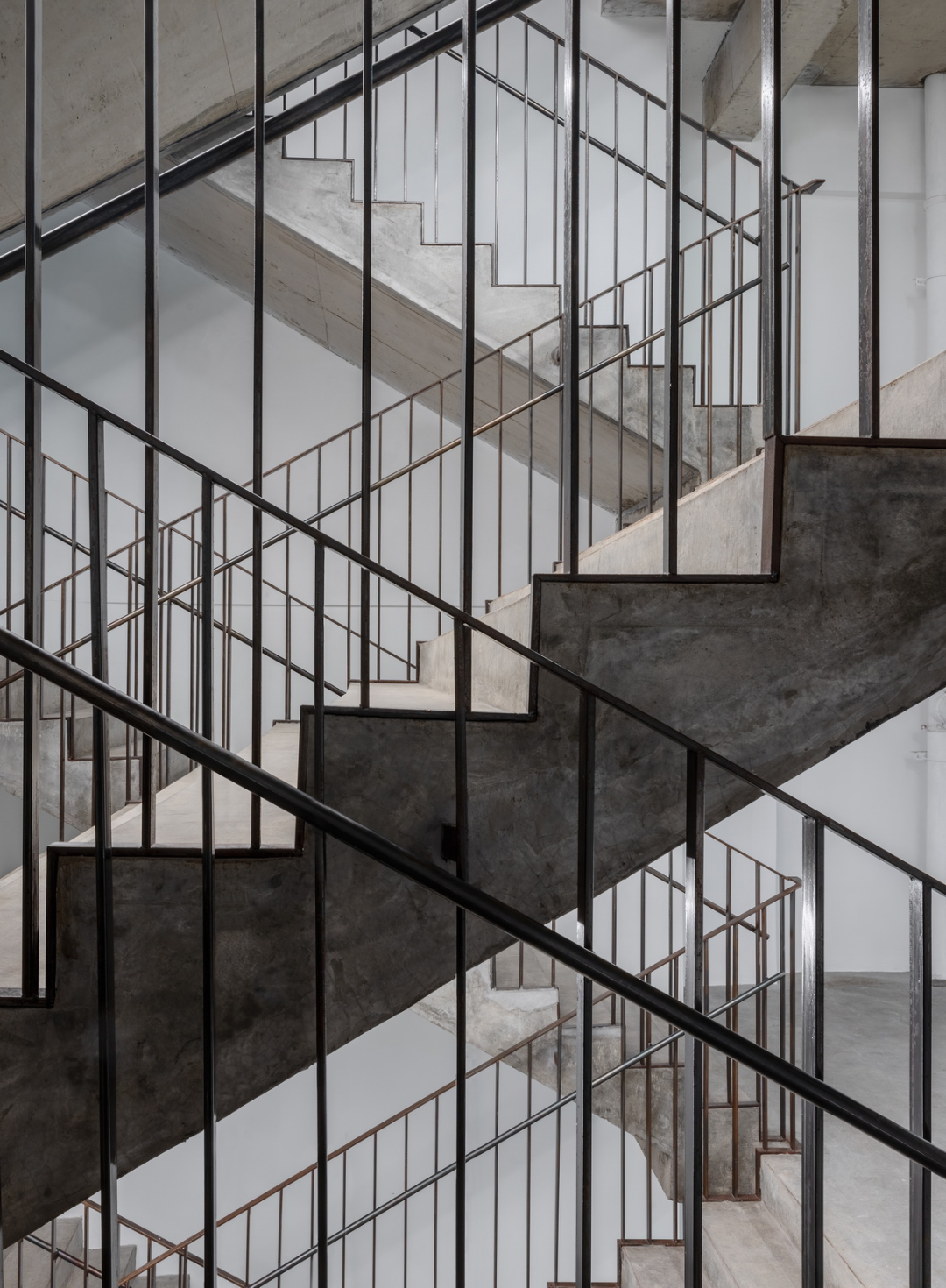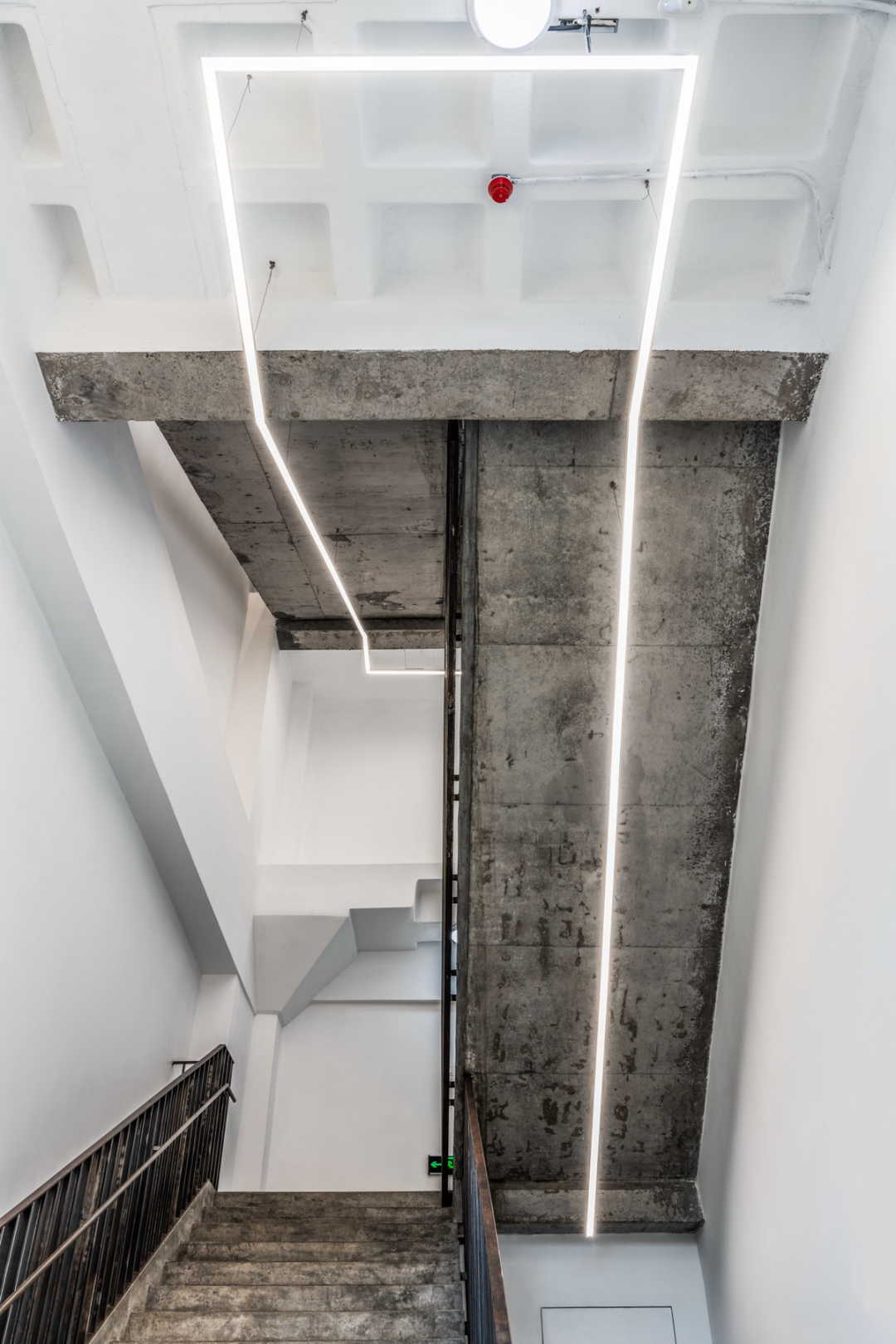 这个空间充满了精致和混沌,同时还夹杂着老建筑的记忆,这也是对伞形柱的敬意。设计者们花费了很大的力气,将混凝土本身的粗糙质感剥离,并对其进行了打磨处理。这样一来,混凝土材质变得更加精致和光滑,展现出独特的美感和质感。这种设计不仅呈现出现代感和时尚感,还能够带给人们一种别样的历史感和文化感。