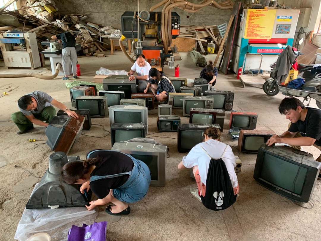在海信电视机仓库里,有30台被废弃的老电视机。这些电视机的外壳已经破碎不堪,内部芯片也已经尘封多年。人们觉得这些电视机再也不会在人类的视野中出现了,但我们却认为这太可惜了。于是,我们发动整个办公室一起拆下这些电视机的芯片,让它们重新焕发出生命的光芒。在此,我们要特别感谢结庐Ben举家帮忙。