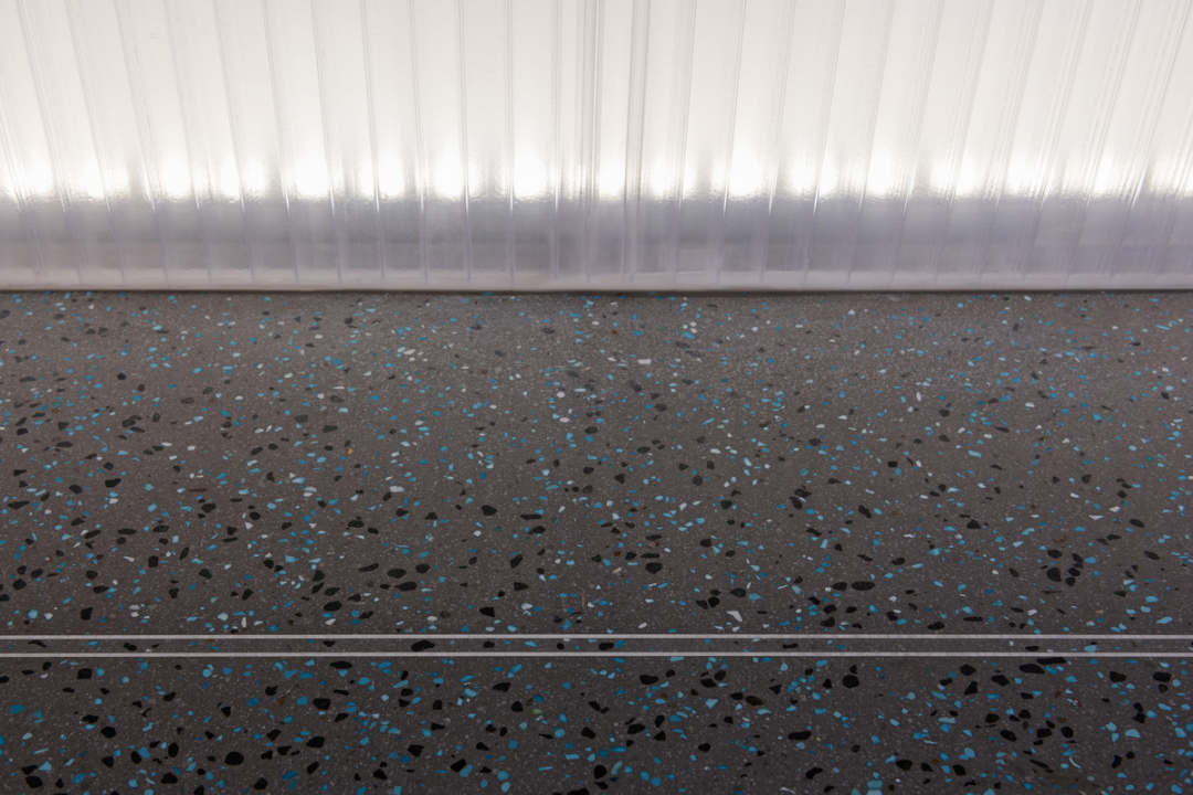由于这是一个商业项目,商业本身的特性必须得到充分的体现,这也是我们对业主的敬意。我们发现,在这个世界上有一种绿色,叫做海信绿,这是海信人的骄傲,也是青岛青的代表。因此,我们寻找到一种与海信绿相近的骨料,并通过不断的磨石和冲刷,将其变得平坦,并在其表面展现出一粒粒的海信绿。通过这种方式,我们希望将隐喻的价值更多地展现在商业露出中,既不显眼,也不掩饰。这样一来,设计不仅能够体现商业本身的特性,还能够传达出更加深刻的意义和价值。
