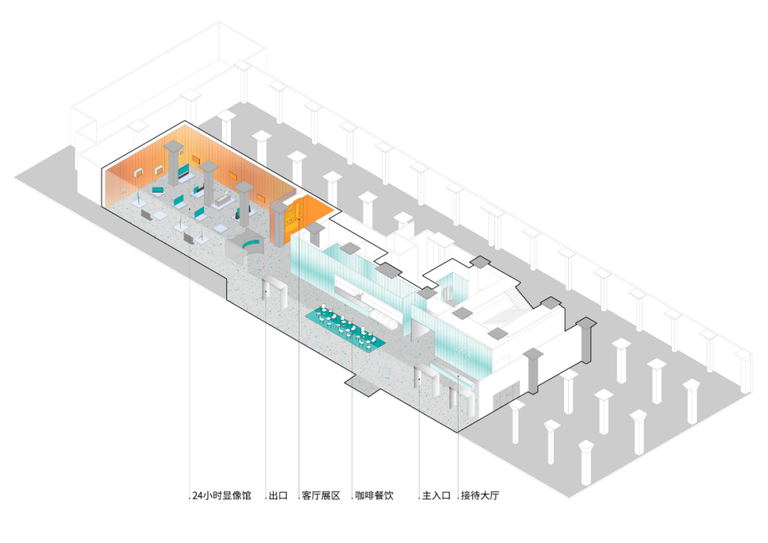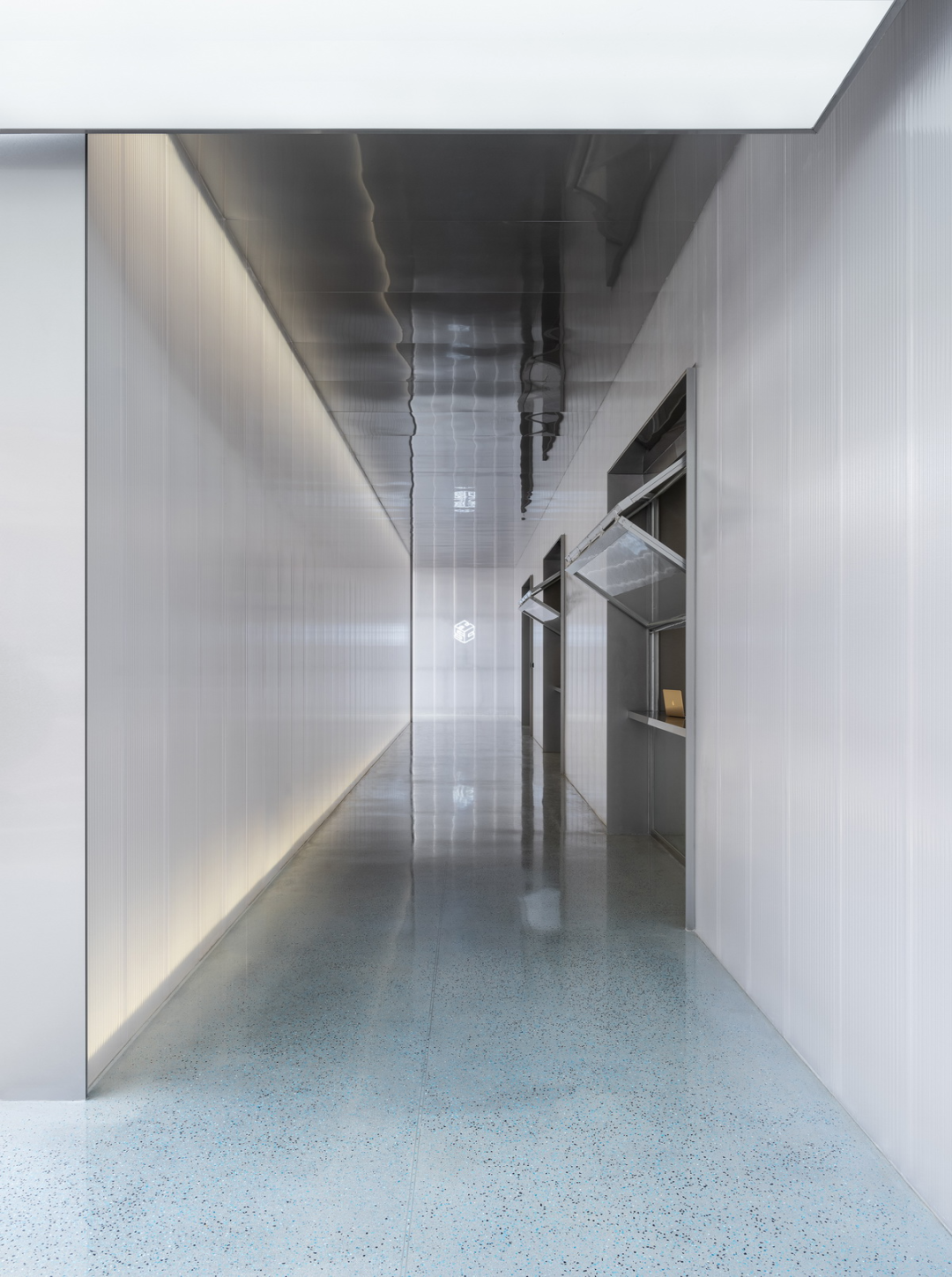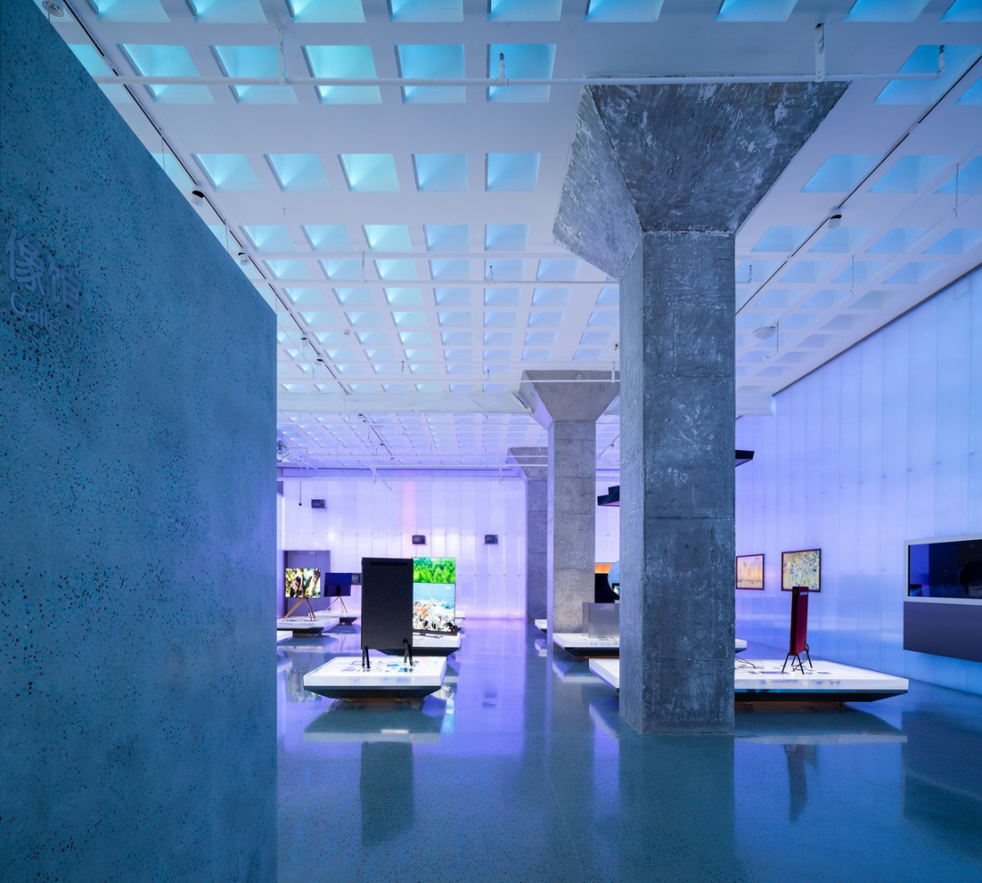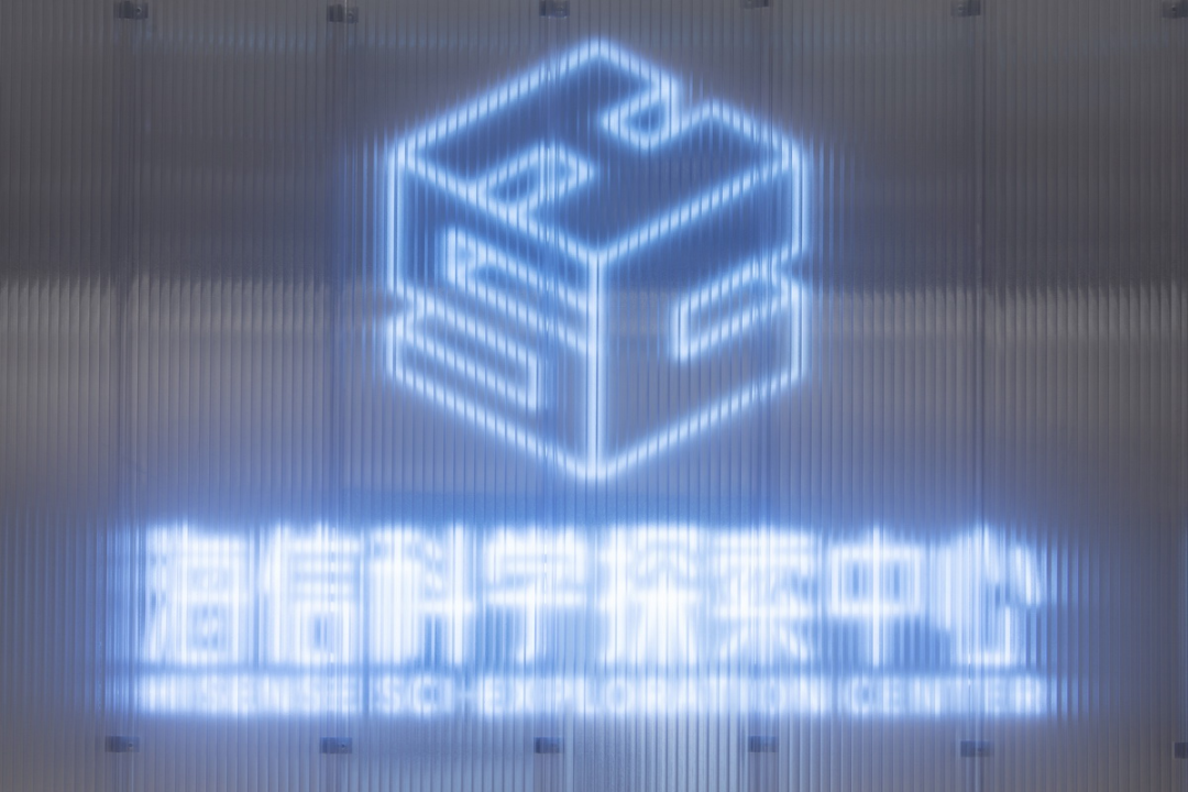 裸筑一直秉持着为每个空间赋予独特的声音、性格和形态的理念。对于海信科学探索中心的设计,我们深入了解了海信电视的发展历史,发现了一个被人们忽略的重要信息:电视机在一个多世纪的发展历程中,屏幕由模糊到清晰的过程实际上是文明发展的过程,是历史向我们揭示文明精华与糟粕的过程。我们希望通过设计将这样的“经历”保留下来。从模糊到清晰,是电视机的生产史,也是海信的发展史,更是其不断精进的结果。我们认为这个历程是非常值得呈现的。此外,现代液晶电视的核心构成是由一块“光谱屏”和一块“彩色屏”结合而成,光谱屏负责亮度,彩色屏负责饱和度。这种分工组合的逻辑越来越清晰,也呼应了“从模糊到清晰”的理念。裸筑希望通过追逐空间的本质,用本质叙事的方式来表达设计理念。