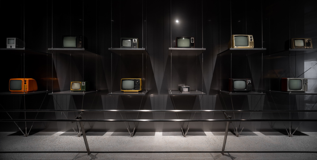 现在,这个项目的未来电视展厅由十二组废弃的老电视拆下来的内芯以及树脂展台组成。树脂展台具有导光性,让内部的老电视零件在其内部闪耀光芒,犹如熠熠生辉的珠宝。