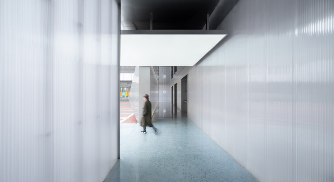 在设计中,我们采用了类似的处理方式,营造出了精致与粗糙的冲突,通过钢扶手的秩序,赋予空间以饱满的感觉。同时,我们对灯的排布和指向进行了精心的设计,在通道空间中,灯光成为了最为本质的存在。这种设计不仅使得空间变得更加舒适和宜人,还能够创造出一种独特的视觉效果,令人难忘。