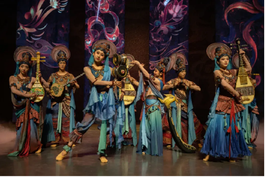 在舞蹈方面,专家团队以“基于敦煌壁画而不限于敦煌壁画”为理念,用广博的视野再现历史语境,还原乐舞风貌,凸显敦煌作为“华戎所交一都会”在丝路乐舞交流史中的重要地位。