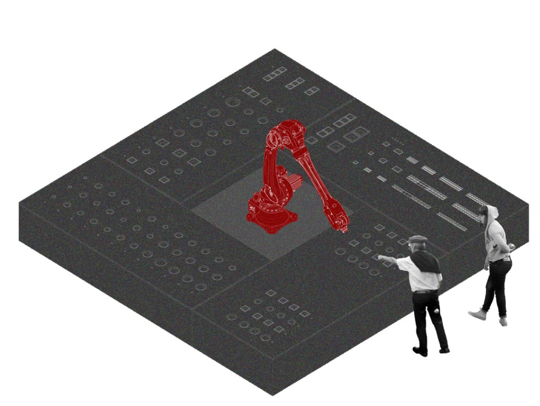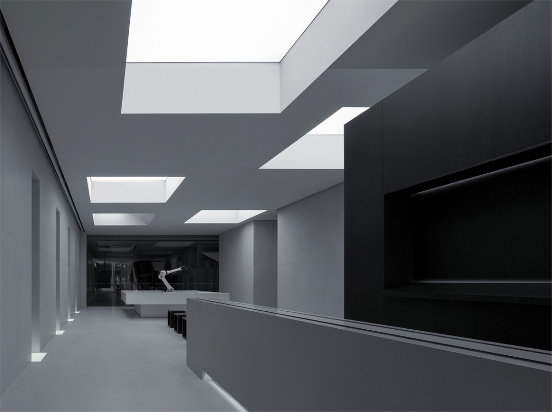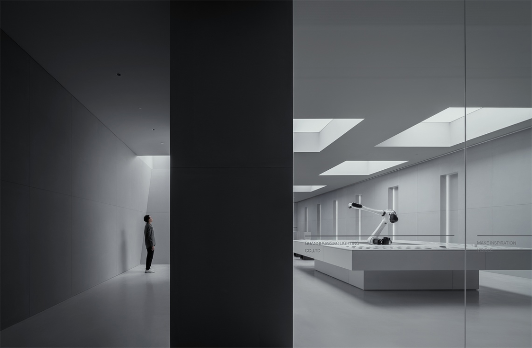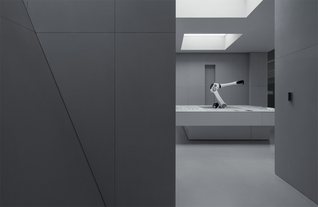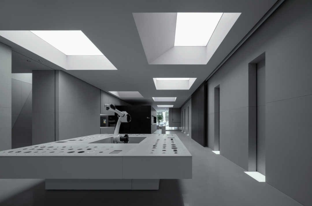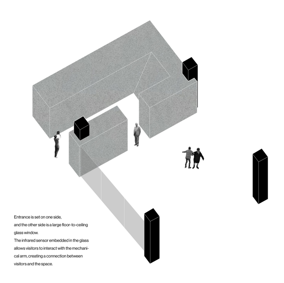The entrance to this space is located on one side, while the other side is a floor-to-ceiling glass observation window. These windows not only provide natural light, but are also able to create an emotional connection with the audience through the interaction of sensing technology and robotic arms. Through the combination of digital technology and the real world, we can provide an emotional experience beyond imagination, allowing the audience to feel the moment when two completely separate worlds meet here. This design allows people to explore more deeply the connection between the digital world and the real world and gain a unique experience in this space.