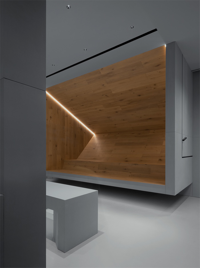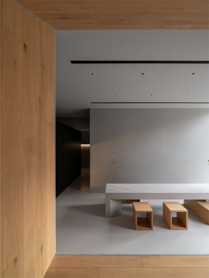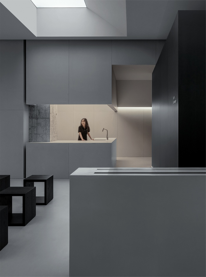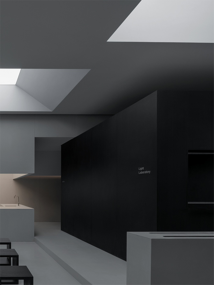 这个空间聚集了学者、艺术家、设计师等不同领域的人士,为创造一个具有协同效应和社区意识的环境而汇聚在一起。建筑采用混凝土、黑色木饰面和石材等材料,构成了基本的色调,强调了对空间视觉感受和情感体验的关注。与无思考的材料堆积相对,这个空间重视创新精神和设计价值。