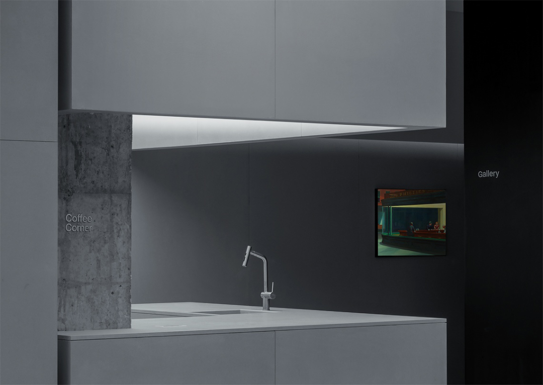 The space brings together academics, artists, designers, and more, coming together to create an environment of synergy and a sense of community. Materials such as concrete, dark wood veneer, and stone are used in the building to form the basic color palette, emphasizing the focus on the visual perception and emotional experience of the space. Contrary to the unthinking accumulation of materials, this space emphasizes the spirit of innovation and design value.