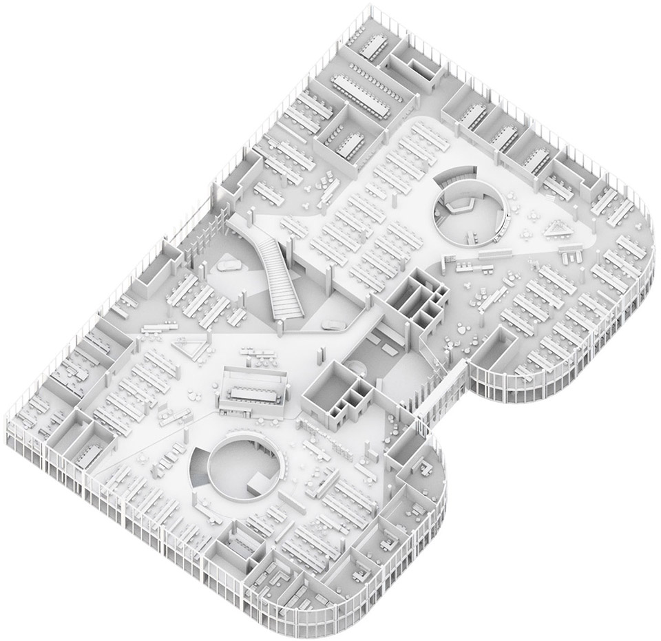 The design takes "trace" as the core concept, introducing the flow form and vehicle trajectory of urban space into the office space, creating a dynamic environment. The entire building is like a small city, echoing the logo of the Bayern brand and displaying a combination of multiple forms of expression and fusion in decoration.