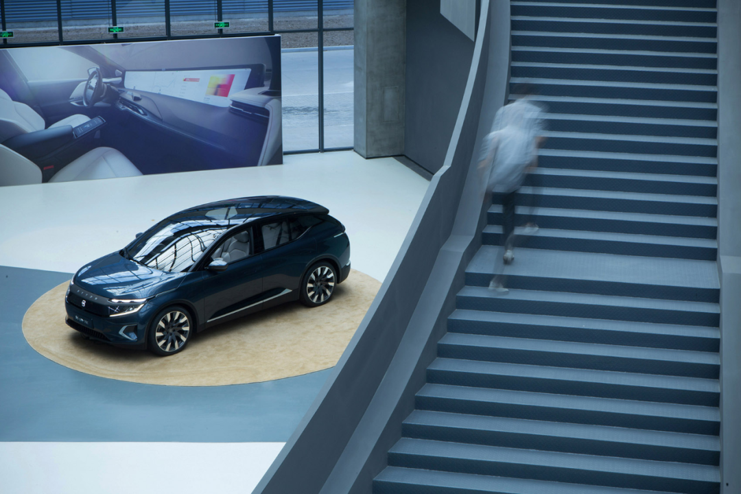 展厅设计以流畅的线条和光影变化为核心,打造出一个充满温度的体验空间,展示了拜腾的创新理念和数字化力量。