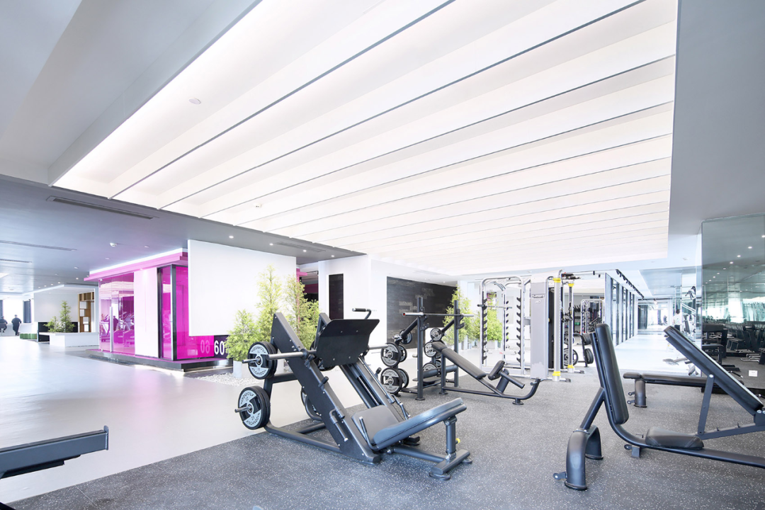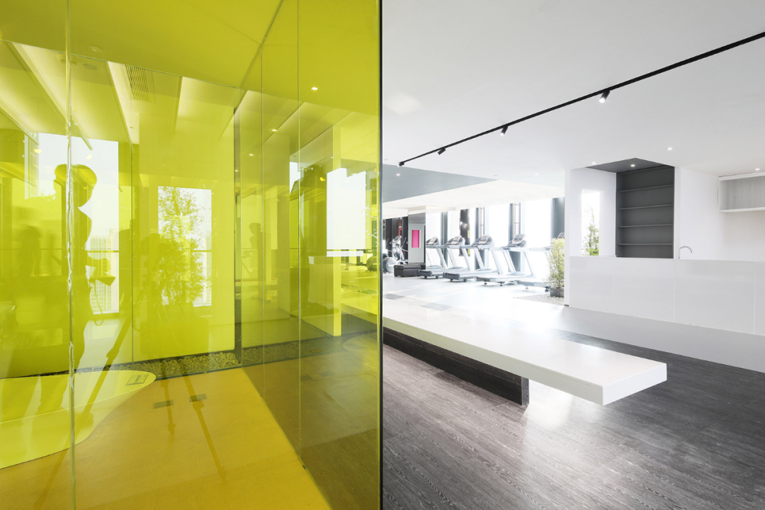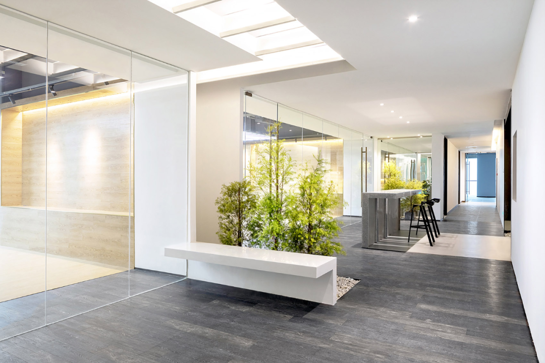 项目主材:PVC地板/墙板,橡胶地垫,人造石,镀膜玻璃,多层实木,花岗岩碎石,铝板灯