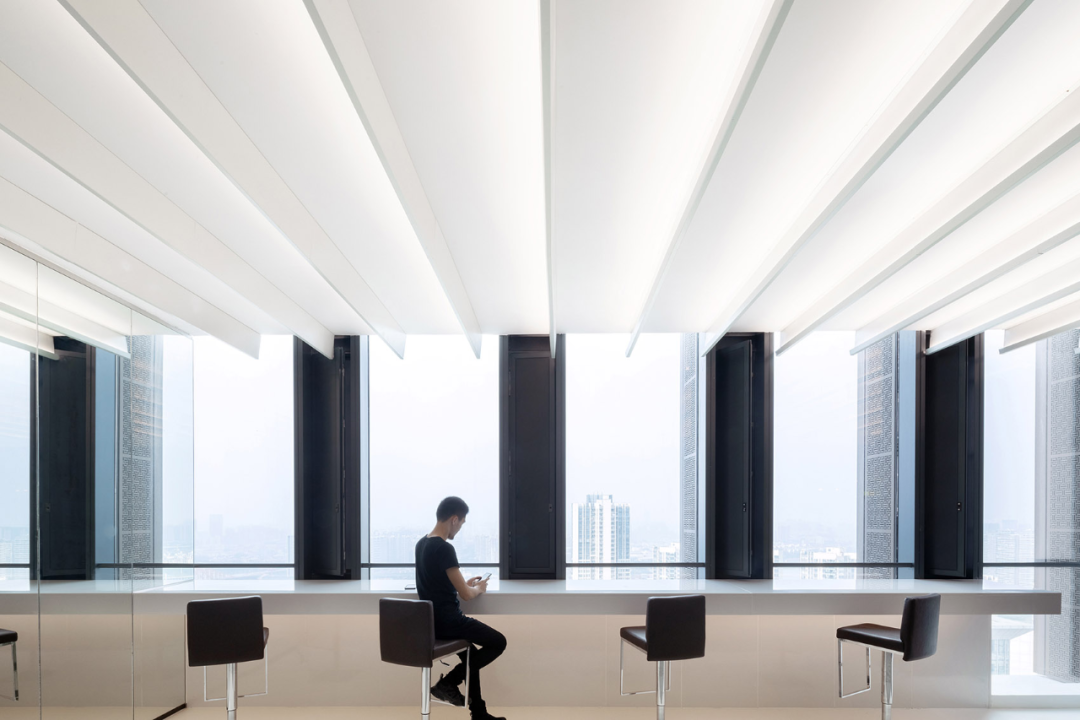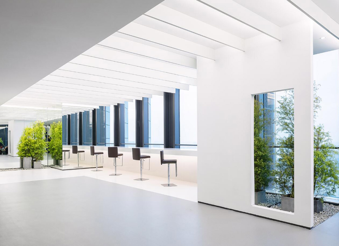 保利睿思工坊是位于佛山保利东湾超高层甲级写字楼的新型综合型空间品牌,它旨在创造一个多元化的共享环境,探索高层写字楼的另一种办公可能性,以及未来新型办公社交模式。作为一个新型空间品牌,它包含办公、商务、娱乐、休闲、艺术等多种复合功能,力图成为一个集中办公与社交于一体的场所。