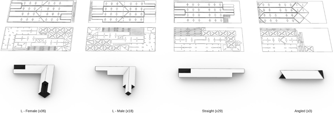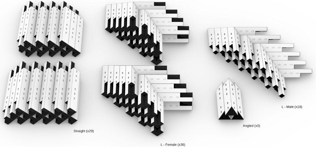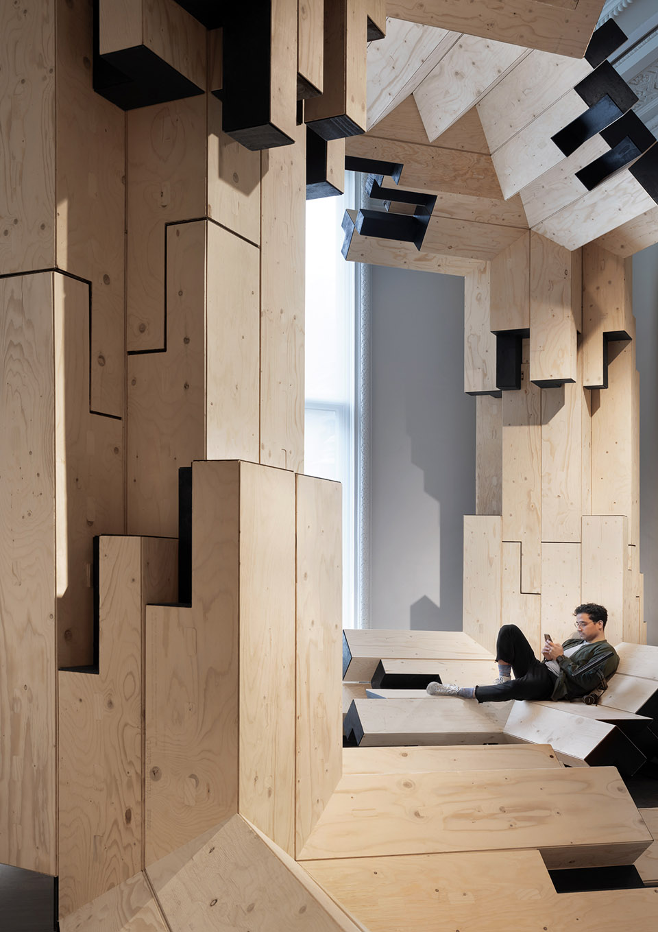 每个胶合板构造模块都由软胶合木板经过数控铣削后拼装而成,它们可以在装置的任何结构部位安装。这些模块通过拉力连接在一起,形成了足够坚固的体系。