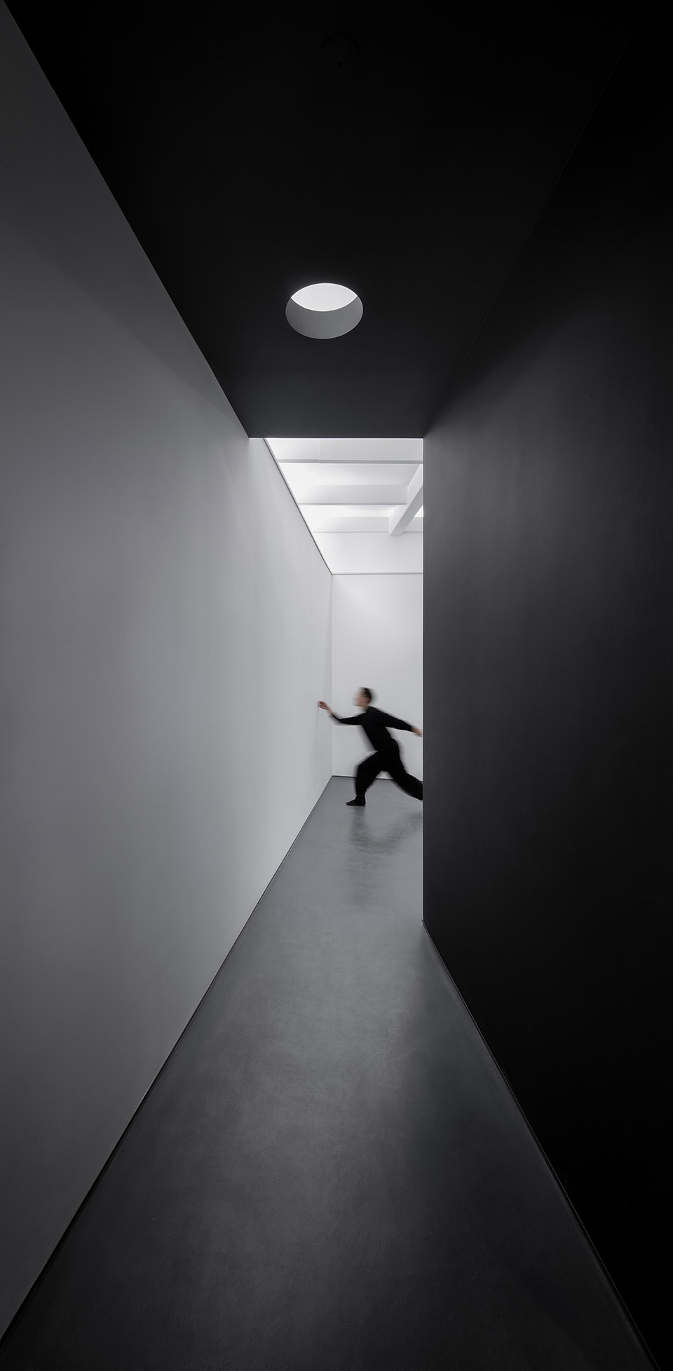 Shen Shaomin described, "The structure of the art museum itself is an irregular framework. In order to increase the function of the exhibition line, we have built a long corridor around it, doubling the exhibition line. At the same time, this long corridor also forms a black tunnel leading to the white hall of the art museum, which is also a process experience for the audience to search for light.