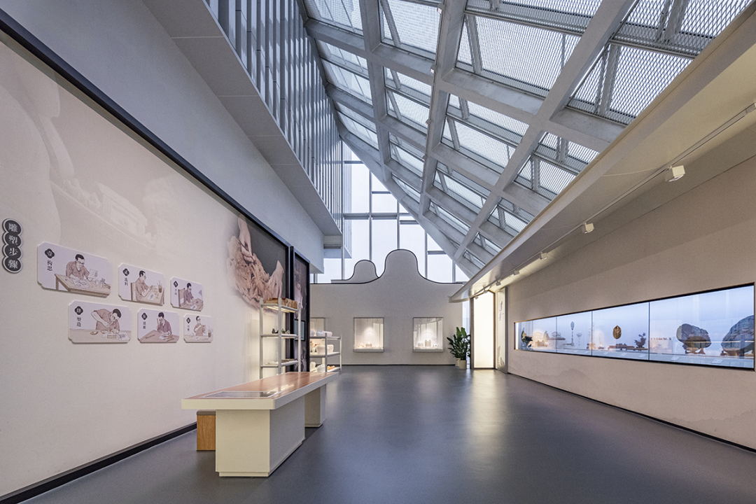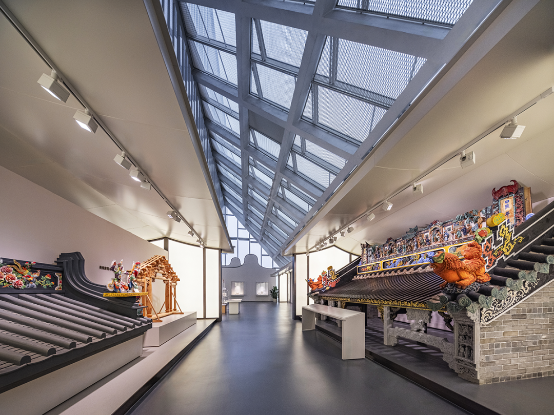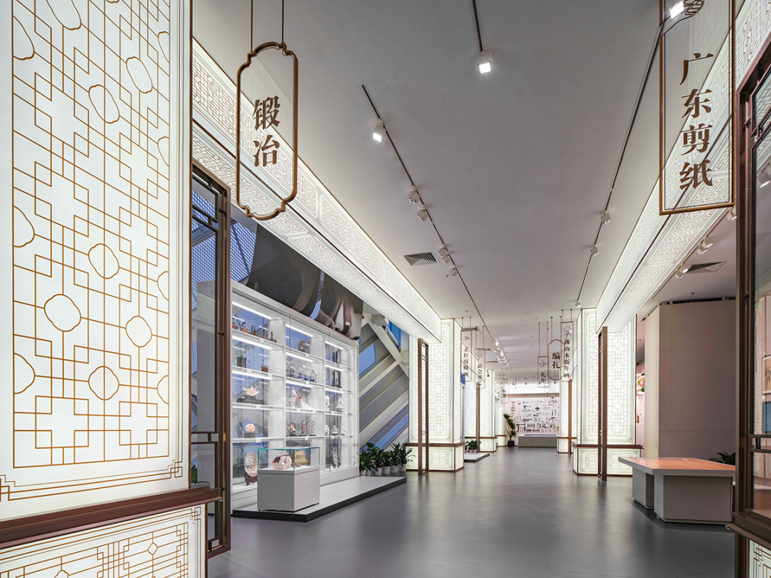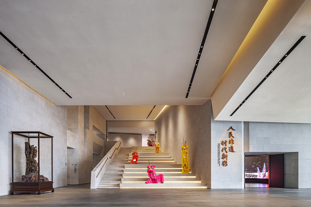 In terms of spatial design, the entire museum is designed with a Lingnan style, keeping up with the times, and a simple and atmospheric spatial tone. It also integrates architectural features, spatial structure, exhibit characteristics, and natural lighting of the site. Through modern spatial forms and a space language rich in regional characteristics, it interprets the unique, dynamic, regional, and contemporary characteristics of Guangdong's intangible cultural heritage.