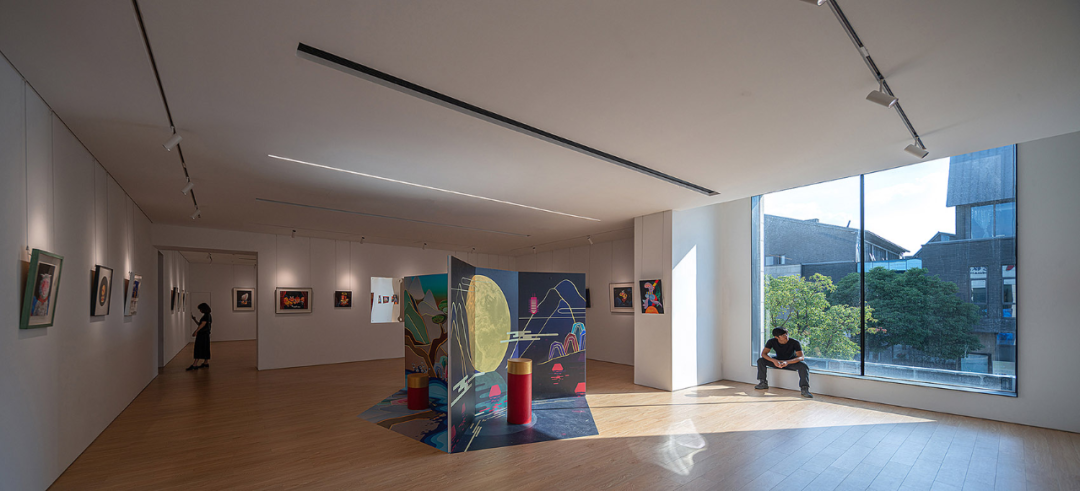 The renovation of the building facade is based on the functionality of the indoor space. By opening windows in different forms and scales, direct light is avoided from the exhibition hall space, achieving a natural transition of light and meeting the light needs of different functional spaces, allowing light and space to constantly interweave and change.