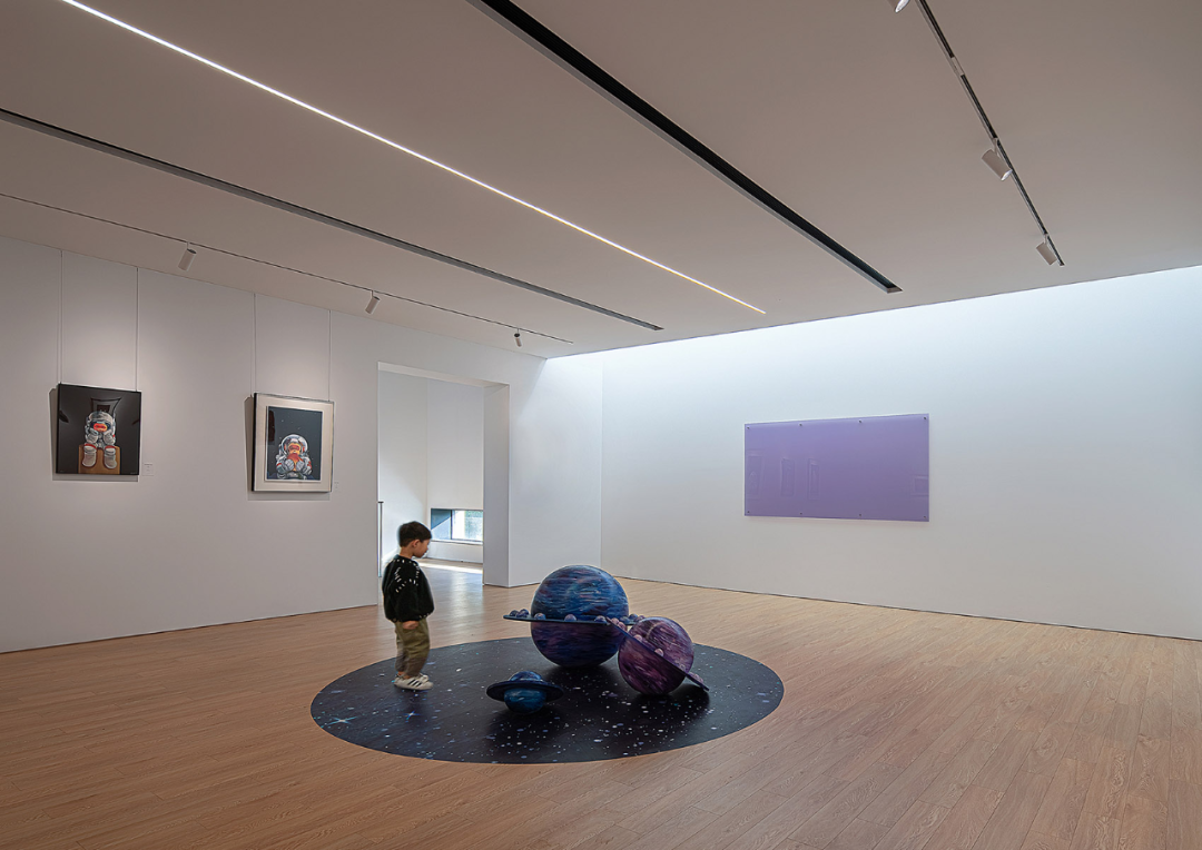 Unlike traditional art museums, the space for children's art exhibitions has more relaxed and flexible requirements for environment and lighting, and its exhibition forms are also more diverse. The designers created four types of exhibition halls with distinct spatial experiences through changes in lighting, based on the conditions of the existing buildings and the surrounding environment on site.