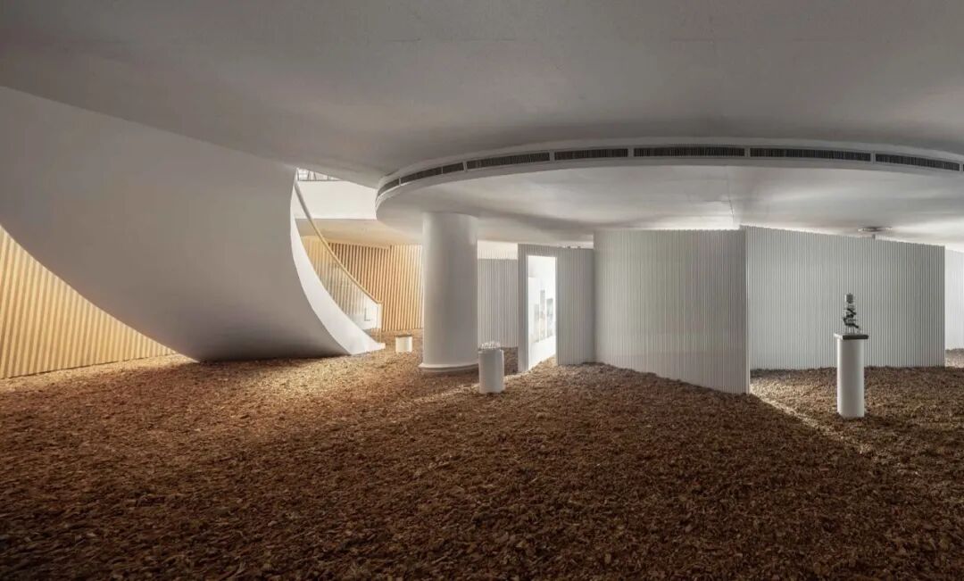 The ground material of the museum is coconut shells from local farms in Thailand. Usually, coconut shells are used as soil fertilizers and insulation materials, but in museums, these coconut shells cover the entire site space. On the one hand, they create a visual impression of a vast land, and on the other hand, tourists can feel the undulations, softness, and tactile sensation of the soil while walking.