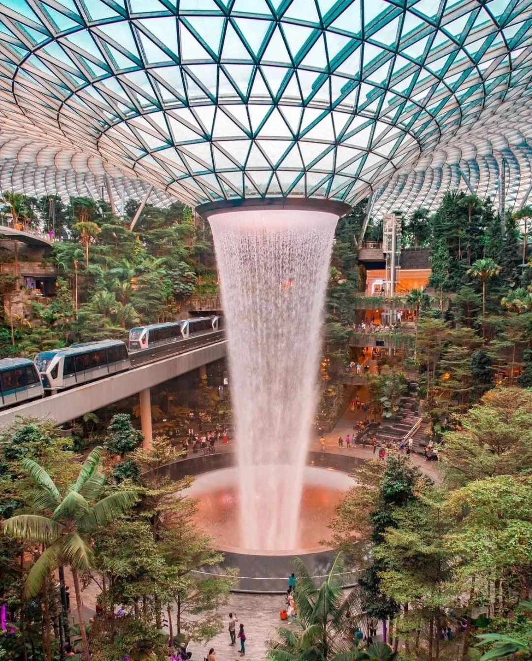 利用景区设计手法打造完全让人沉浸其中的自然世界,新加坡樟宜机场就是利用旅游规划。从T1开始,就试图在每一个航站楼里设计一些旅游体验上的亮点,以至于经常让人忘记自己身处机场。比如世界上最大的动态艺术雕塑雨之舞,六百多个铜珠通过电脑程序的控制可以变化出各种造型,再比如分布在几个航站楼的各种各样的主题花园,蝴蝶、仙人掌、兰花、向日葵、睡莲等等让人游逛与公园沉浸于自然之中,从外看只是交通枢纽,而内部却别有洞天。其将植物园、艺术馆、甚至高达40米的巨型水瀑布搬进机场空间,在艺术视觉上的极致反差,正如同它的名字“探索花园”(Discovery Garden),吸引人们前往驻足。