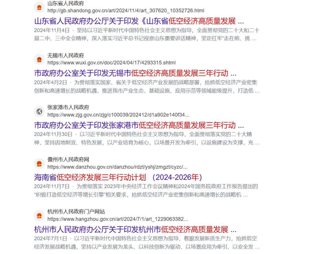 (图片:地方关于“低空经济”颁布的相应发展政策|来源:网络截图)