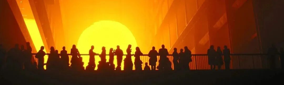 埃利亚松的《The Weather Project》通过灯光和镜面打造出一轮仿佛真实的“太阳”,让整个大厅沐浴在金黄色的光辉中,许多人甚至躺在地上享受“室内日光浴”。展览充满互动性,观众不仅是欣赏者,也是作品的一部分。他们的影像被镜面反射,仿佛是作品的一部分。这种沉浸式体验,让每个人在感受“太阳”和雾气的同时,也在无形中参与到作品的创作中。
