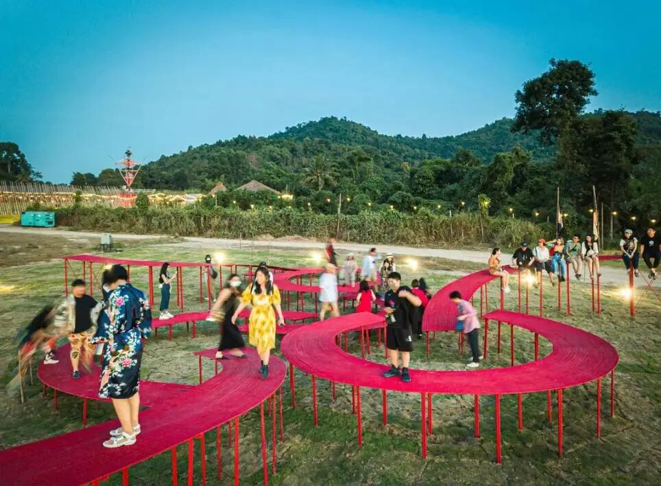 例如泰国艺术节步行道,利用架高在草地上的走道,旨在帮助人们意识到一些类似于草地的小型植物的重要性,同时关注到那些平时经常会忽略掉的细微之处。漂浮在草地上的走道由8个弧形组成。它们根据高低不同分组,由斜坡卷绕在一起,一共跨越414平方米的面积。每一年步行道都会有机地“生长”产生变化,就像草地、人类、动物、大树等有生命力的自然生物一样。
