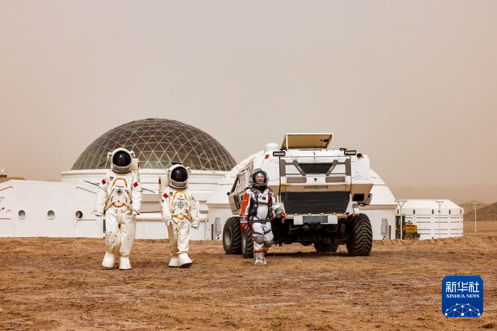 (图片:游客身穿航天服体验“火星漫步”丨来源:新华社)