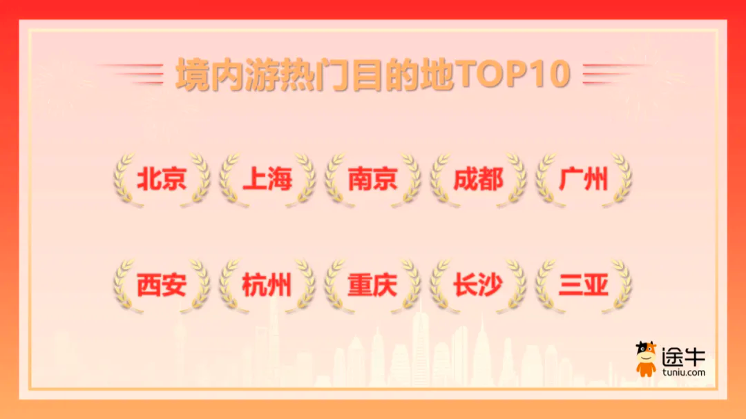 在境内游热门目的地的选取上,北京、上海、南京、成都、广州、西安、杭州、重庆、长沙、三亚等地吸引了更多途牛用户的目光,相关目的地浓郁的传统文化氛围或独特的赏秋体验成为吸引用户的 “流量密钥”。近些年来,前往大唐不夜城拍摄汉服照,去往敦煌拍摄飞天照,已然成为西安、敦煌两地文旅消费的 “金字招牌”。而《黑神话:悟空》从暑期末开始的持续爆红更为传统文化和中式审美注入了新的活力,传统文化游、古建古镇游、文博游等成为引领文旅消费的风向标之一。