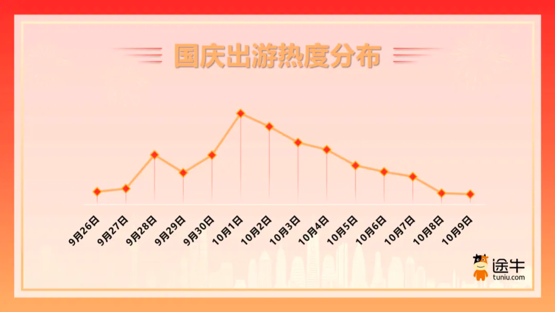 随着国庆假期逐渐临近,旅游市场的长假活力已然提前展露出来。《报告》的数据表明,在此次 “会员日” 期间,途牛度假产品的预订量同比有显著增长,其中,国庆团期的度假产品订单占比超过了 30%,中秋假期成为了国庆旅游产品预订集中爆发的时期。今年的国庆节从 10 月 1 日至 7 日放假调休,一共 7 天。作为一年中最后一个法定长假,“玩得过瘾、玩得痛快” 成为不少用户制定出游计划的关键要点,因此,“请 2 休 10” 的灵活拼假方案受到了许多用户的追捧。“请 2 休 10” 指的是在 9 月 29 日至 30 日请假调休 2 天,加上 9 月 28 日的周六以及国庆 7 天假期,凑成整整 10 天的 “超长假期”。途牛截至目前的预订数据显示,在国庆团期出游的用户中,近 31% 的用户选择 “前拼” 出游,其中,采用 “请 2 休 10” 拼假方案的用户占比接近 12%。从整体趋势来看,今年国庆旅游的热潮将于 9 月 28 日迎来第一波高峰,假期出游的峰值则会出现在假期首日即 10 月 1 日,出游的高峰将一直持续到 10 月 4 日,1