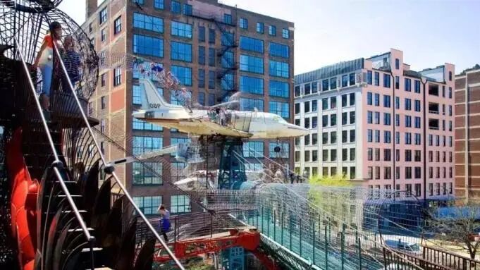 这个位于密苏里州圣路易斯市中心的城市博物馆是一个依附于城市博物馆的超大儿童游乐场,超现实主义馆和建筑奇迹的折衷主义混合体。这里所有组成部分全部由回收材料建成,包括两个真正的飞机,一辆真正的火车、屋顶上的摩天轮……这些大胆的想法,为的就是让孩子玩的开心、嗨的尽兴。