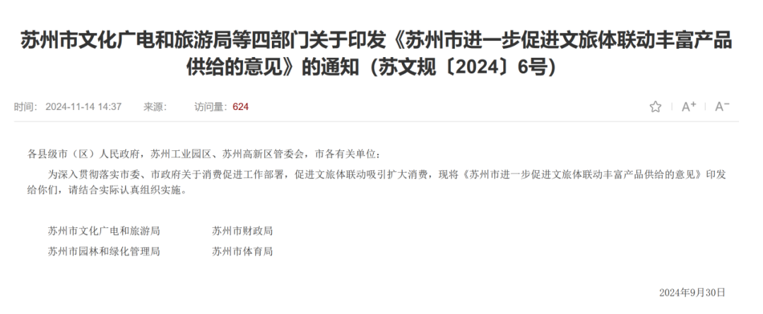 (图片:《进一步促进文旅体联动丰富产品供给的意见》丨来源:苏州市人民政府)