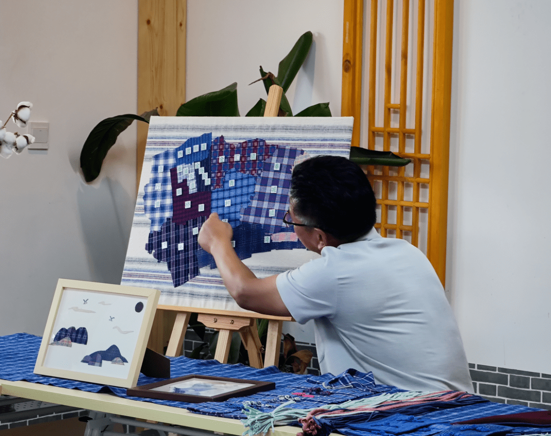 (图片:非遗手工匠人制作非遗布料|来源:网络公开)
