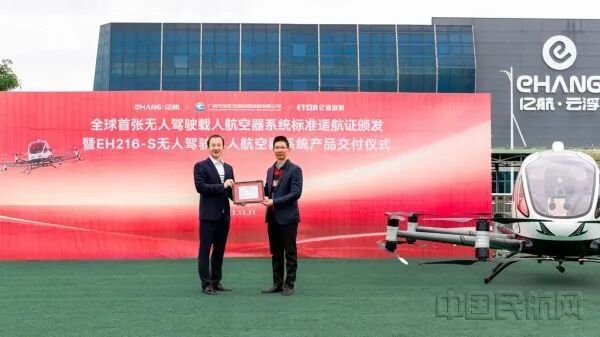 (图片:亿航EH216-S eTVOL 适航证颁发|来源:网络公开)