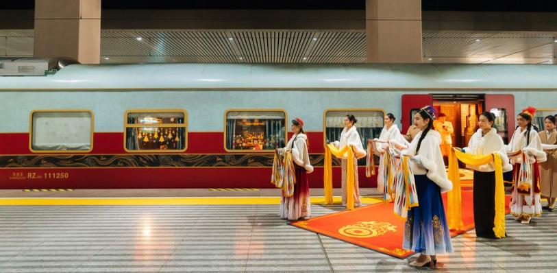 (图片:“丝路梦享号”迎客场景|来源:星享旅铁)