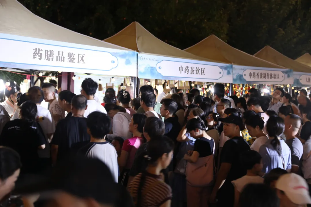 本次夜市设置了名中医义诊区、中医非药物疗法体验区、冬病夏治(穴位贴敷)体验区、中医药丸制作体验区、中药药锤、香囊制作体验区、药膳茶饮品鉴区等11个摊位,其中名中医义诊、非药物疗法体验、中医膳食品鉴尤其受欢迎。此次尝试拓展了城市夜生活的新内容,通过“中医+夜市”的融合模式,实现了传统文化的年轻化、生活化转译,为提升公众健康意识与夜间消费品质注入动能。