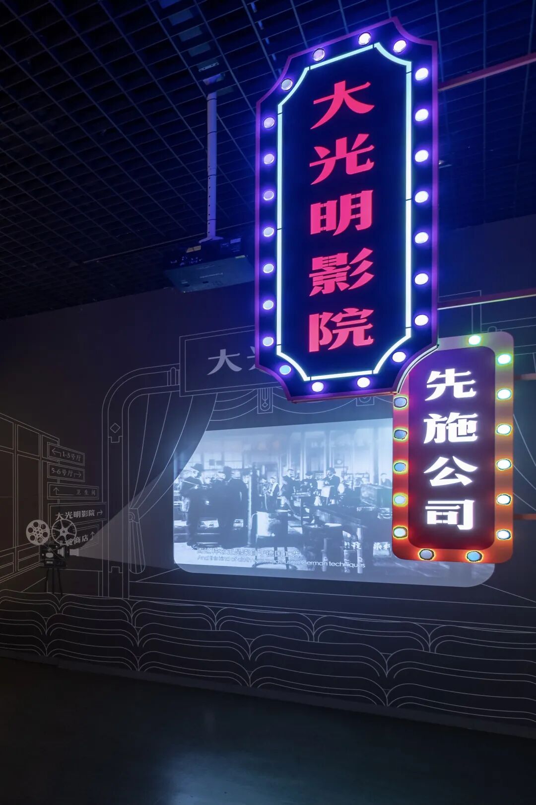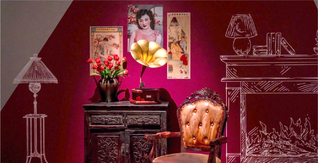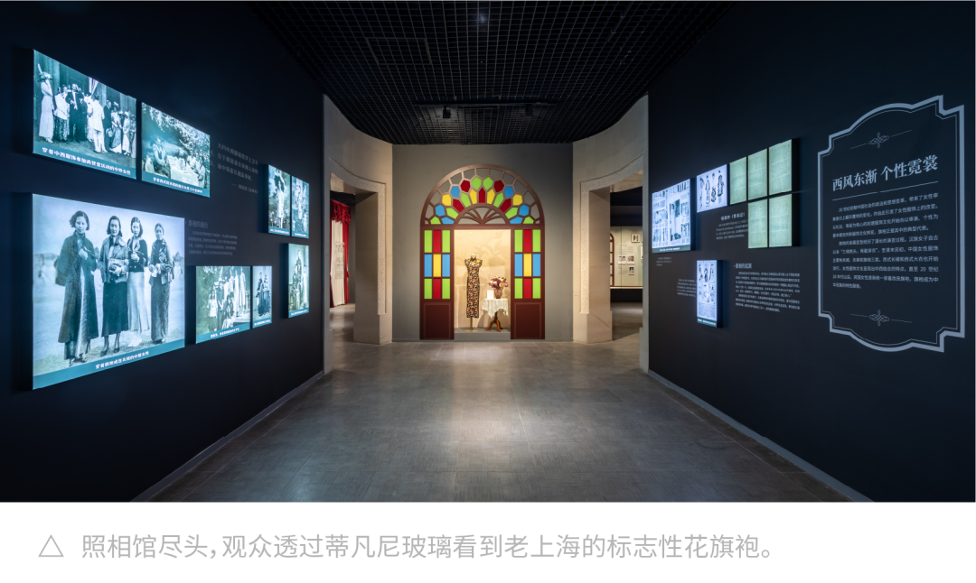 展览中,我们设计了去上海、回徽州、到法国等多个集声影于一体的打卡点,运用剧场的手法来表达人物故事。