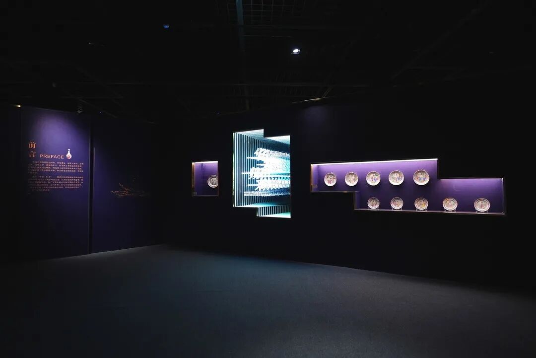 序厅以神秘紫为主色调,打造出西方眼中东方的神秘、瑰丽及厚重感,激发观众的探索欲。陈列符号化的中国工艺品,以散列的形式,营造一种「神秘的」感觉。
