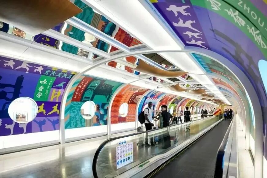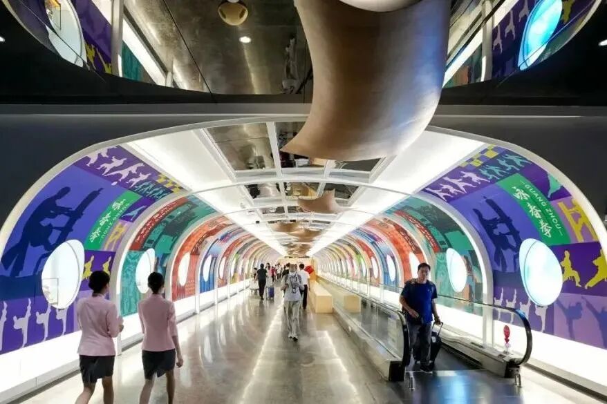 2017年8月16日下午,白云机场大型历史文化长廊——“海天走廊”正式开通迎客,这场由广州白云国际机场与广东省博物馆联合举办展览,成为大部分国内外旅客感知广州的“第一站”。展览位于航站楼主楼负一层地铁出口与A到达区之间,全长200米、面积约3300平方米。
