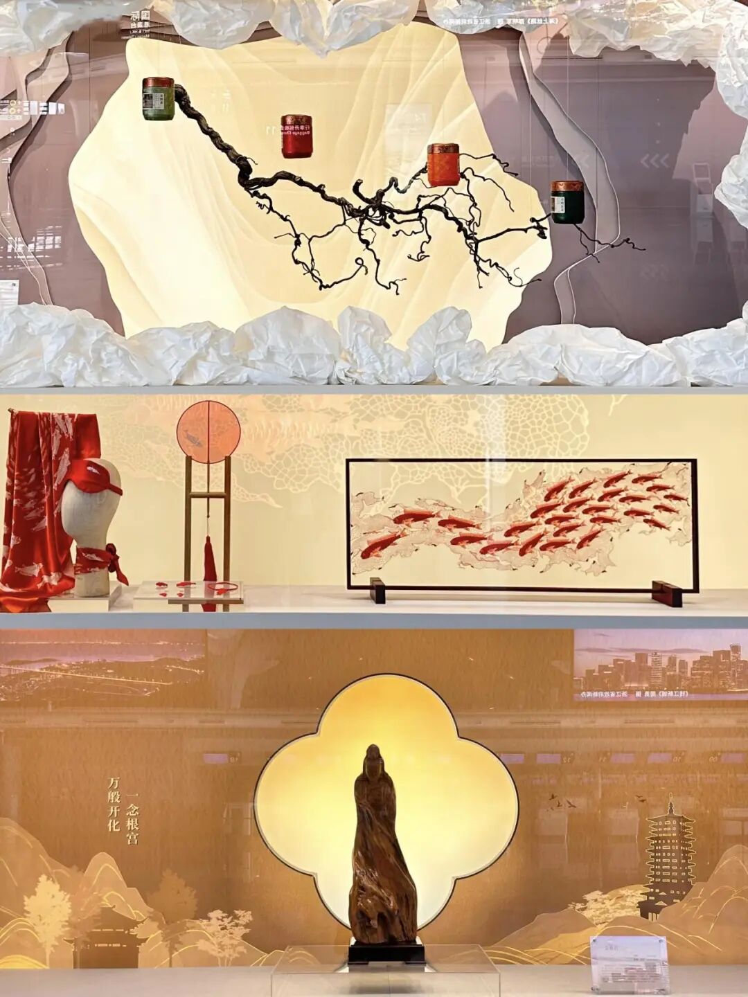 2025年的春运,杭州萧山国际机场再次”出圈”, 出发大厅的“历史经典 美在浙里”展览,从千篇一律的特产商店和专柜柜台中拯救了沉闷了旅途,为旅客带来一股“清流”,展览打破机场商业的常规布局,将浙江“历史经典产业”整合起来,集中展示茶叶、丝绸、黄酒、中药、木雕、根雕、石雕、文房、青瓷、宝剑等十大门类的产品,不仅让浙江特有的工艺文化和生活方式走入日常,也为机场枢纽注入了新的生命力。