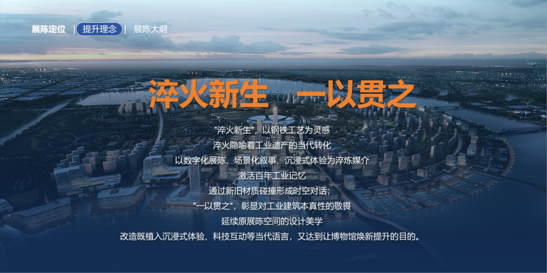 事实上,很多大厂就像我在2018年策划的一个工业展馆的提升方案中,提出“淬火新生 一以贯之”的设计理念一样。都不约而同的指向要秉持“一脉相承”的设计方向,尊重并传承原馆的建筑形态、环境空间以及陈列手法和设计理念的精髓。