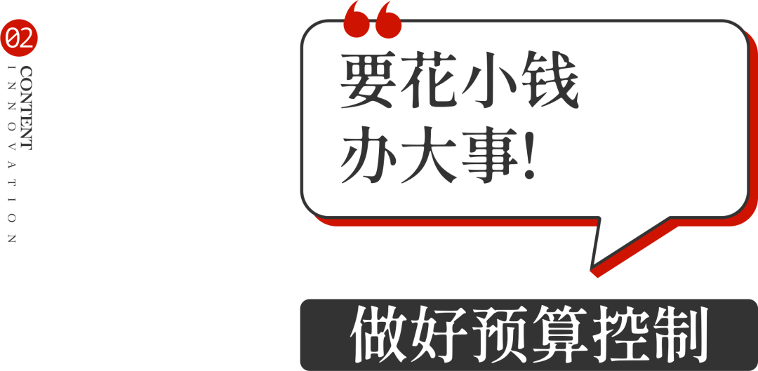 所以“花小钱,办大事”的关键在于后半句的“大”而非前半句的“小”,预算控制的关键也在于“巧用”而非“滥用”。