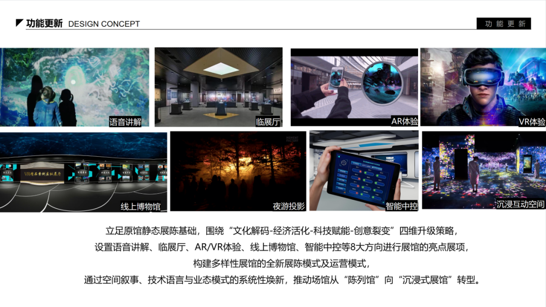某大厂方案为了应对改造项目中功能升级多样化的需求,专门花费两页PPT,直观的将“智能中控系统、线上博物馆平台、语音讲解”等运营中的痛点功能罗列出来。