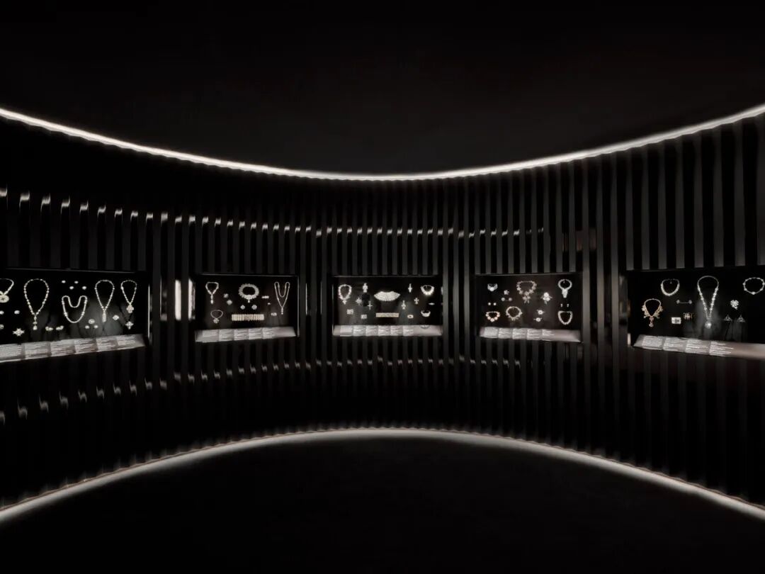 以十个主题分区布局,借米色、金色、白色与黑色构建高雅色调,通过光影变化模拟不同时段场景,赋予展品丰富的观赏氛围。
