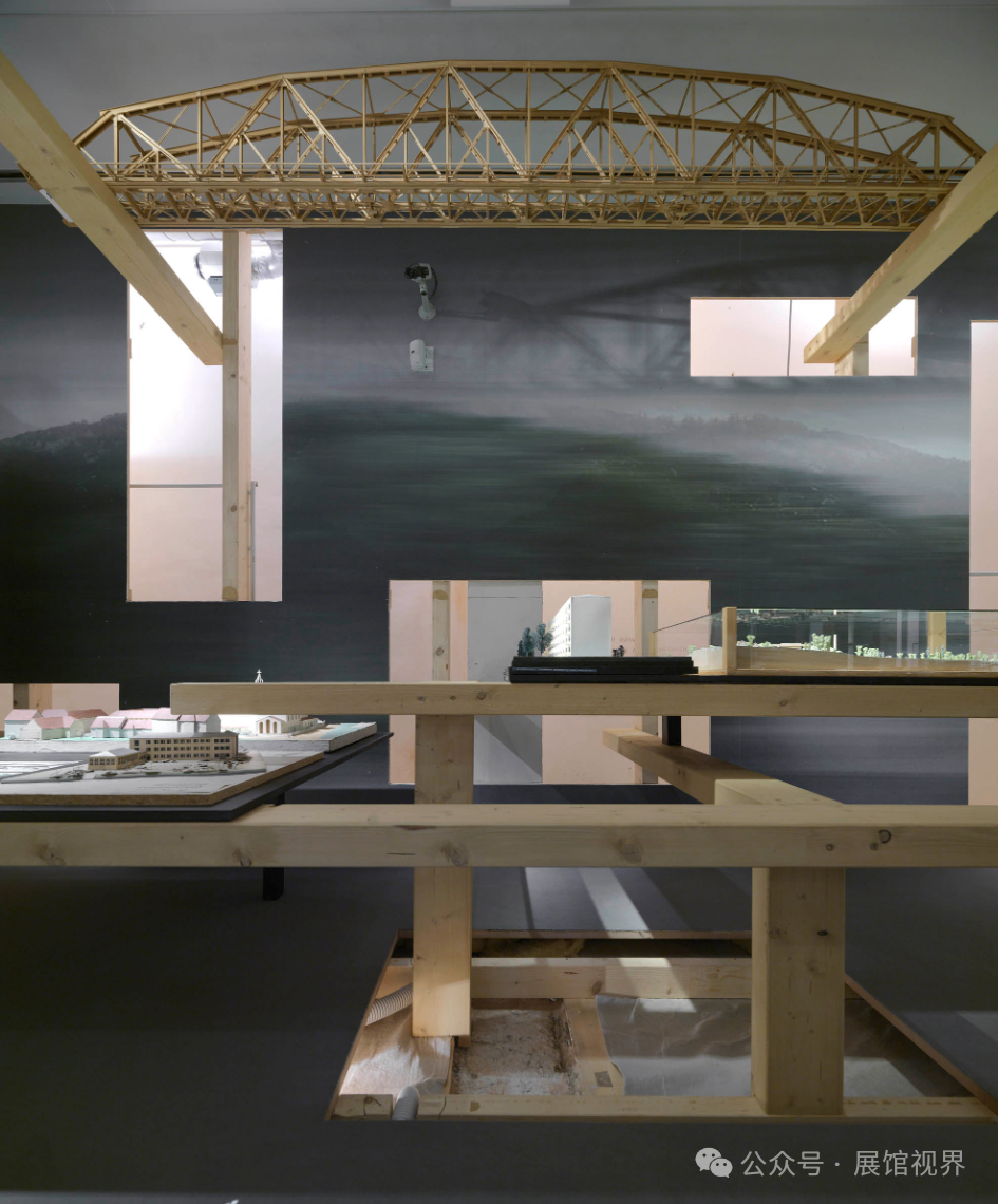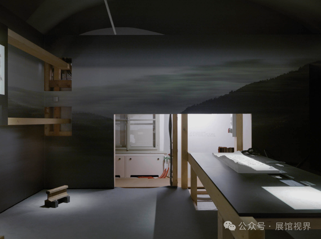 从这些切口中,一个空间的木质结构出现了,参考了外壳的木架结构的材料和尺寸。一个单一的元素,在其坐标轴上旋转,从地板、墙壁和天花板上被倍增和扩散到一个三维空间,作为无数历史地图和比例模型的展示。结构、物体和景观中的差距的相互作用提供了洞察力,揭开了以前隐藏的历史砖石和住房技术的层次。通过钢笔涂鸦的镜头,人类行动的充分性受到了挑战和反映。