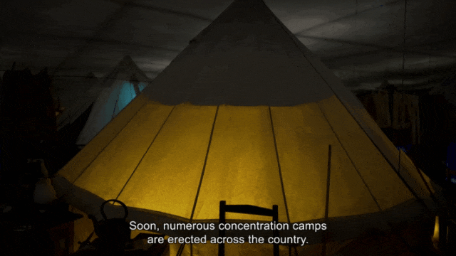 在这个房间里,摆放着集中营的当时场景,伴随着艾米丽的声音讲述她在非洲遇到的女性的故事。