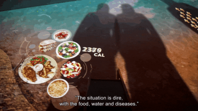 参观者站在互动投影下,亲身体验当时的困境。