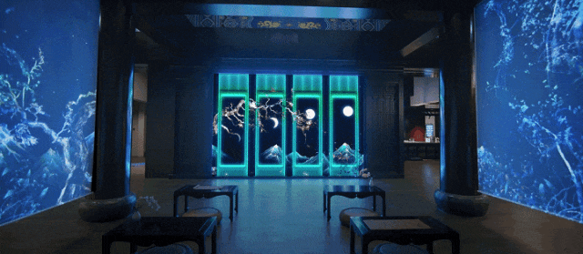 展厅包含一层主厅《步步高升》mapping,一层次厅三折幕《诗画常山》,一层次厅形象宣传片《宋诗之河》,一层电梯屏单屏裸眼《宋代四艺》,二层《三衢道中》,二层电梯屏二维动画《状元荣归》。