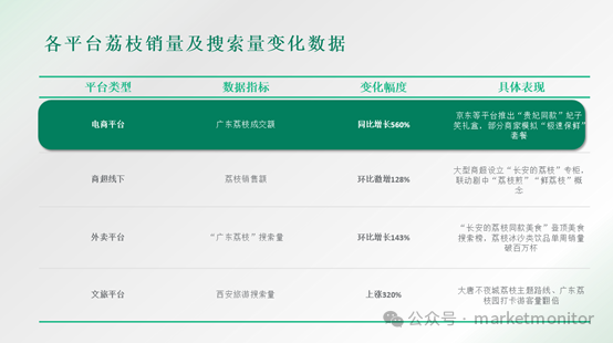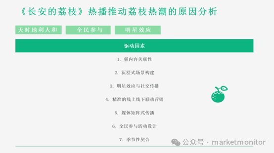 该剧的播出,直接引发了强大的“荔枝经济”热潮。剧中涉及到的“荔枝”元素,成功地在现实中转化为消费动力,根据平台数据显示,“广东荔枝成交额同比增长超560%”,“‘广东荔枝’的搜索量较5月环比增长143%”,“‘长安的荔枝同款美食’等相关搜索词条位于美食榜榜首”。