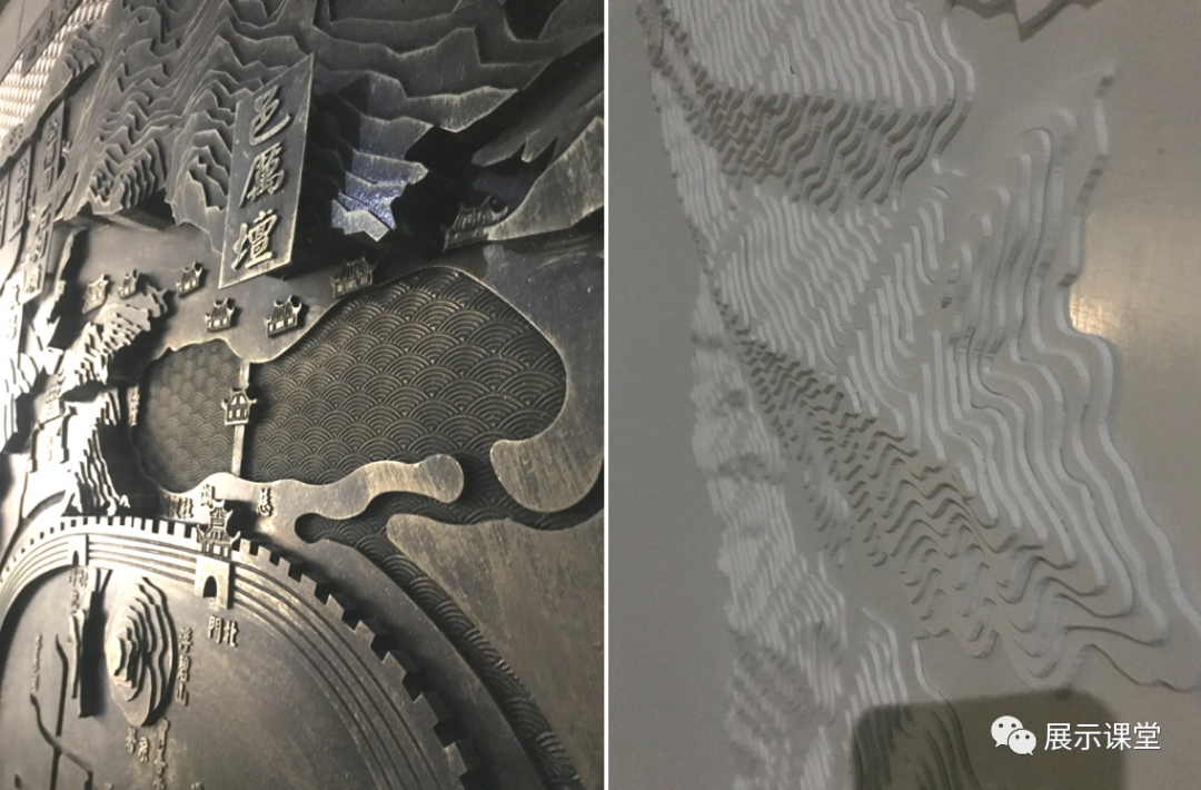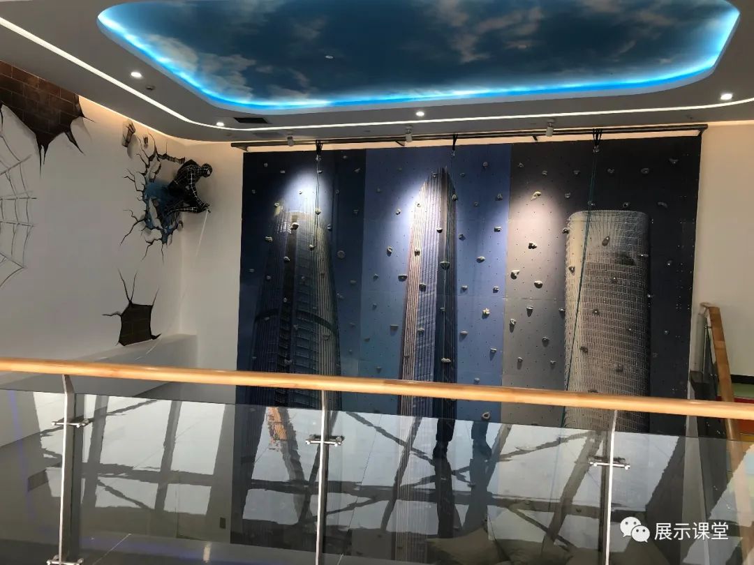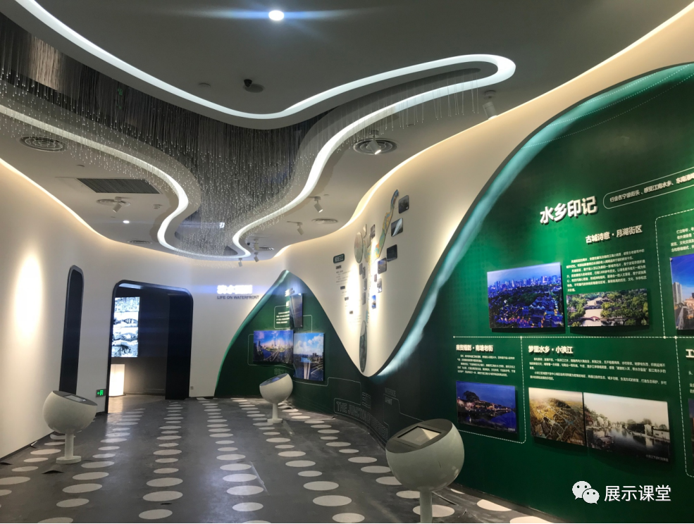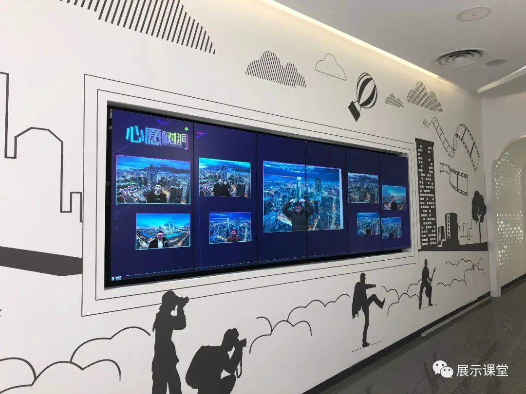 凸出的展板与内凹展板面相互错落,墙面层次比较丰富