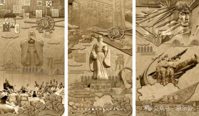 当然,做浮雕的材质不仅仅只有这几种,以上的几个因素也只是影响材质选择的几点比较重要的原因,具体运用中还需根据实际情况而定。今天,搜集了一些展厅浮雕作品,期望能为大家在创作中带来一些灵感。