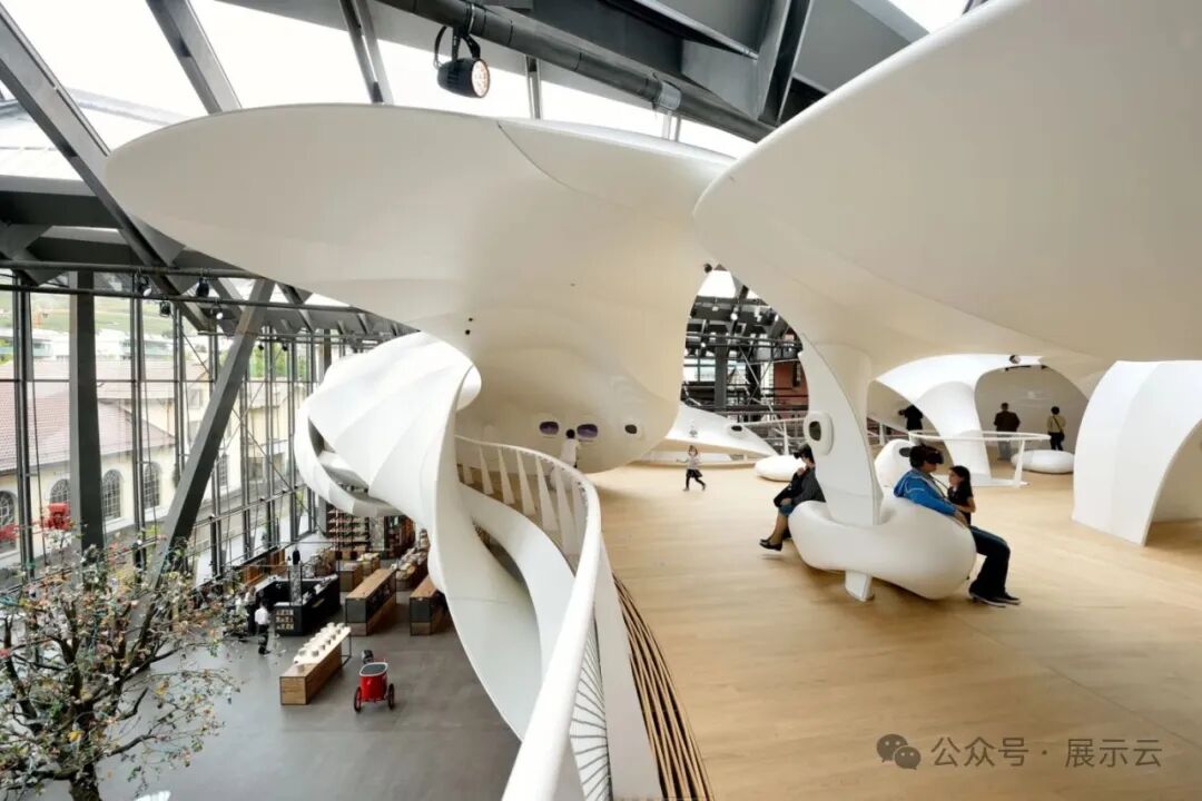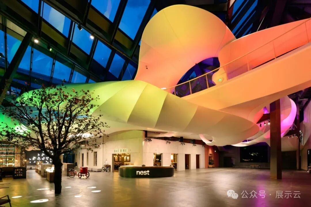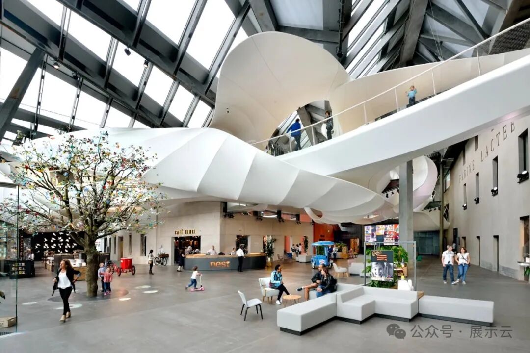 雀巢互动体验中心是在1866年的雀巢工厂的基础上改建而来。建筑的中庭设有一个大型流动坡道,并以此连接五个展示区域。夜晚这个巨大的曲线造型会呈现鲜明的色彩,成为最瞩目的亮点。