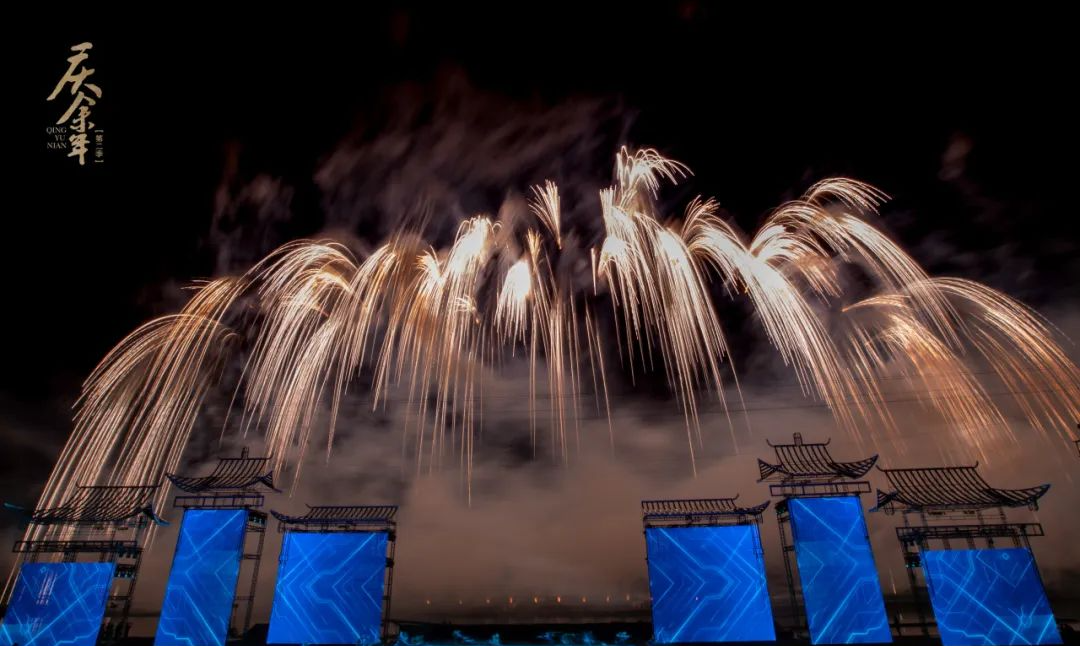 突破以往舞美设计,加入可视化焰火冰屏,虚实结合打破次元,并深度融入威亚和定制烟花道具,声光电立体环绕、穿透夜空,将热播剧《庆余年》中的经典场景和故事情节搬上夜空舞台,通过无人机编队和烟花的完美结合,再现了范闲大婚、春闱科考、赏菊大会、诗游万里等经典名场面。
